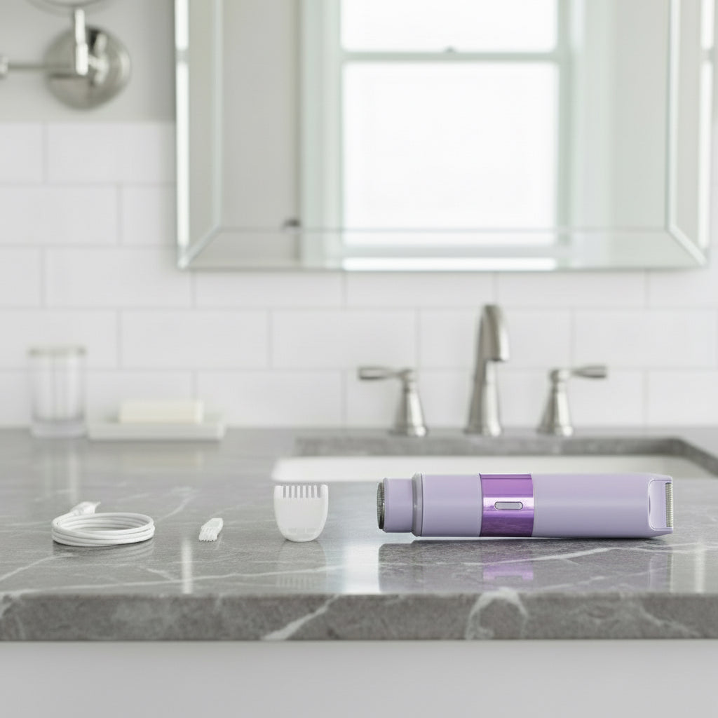Experience smooth, effortless grooming from head to toe. Our 2-in-1 Precision Trimmer is designed to gently shape, trim, and perfect even the most delicate areas — no irritation, no guesswork. Featuring a built-in LED light, it illuminates every curve and contour so you never miss a single hair.